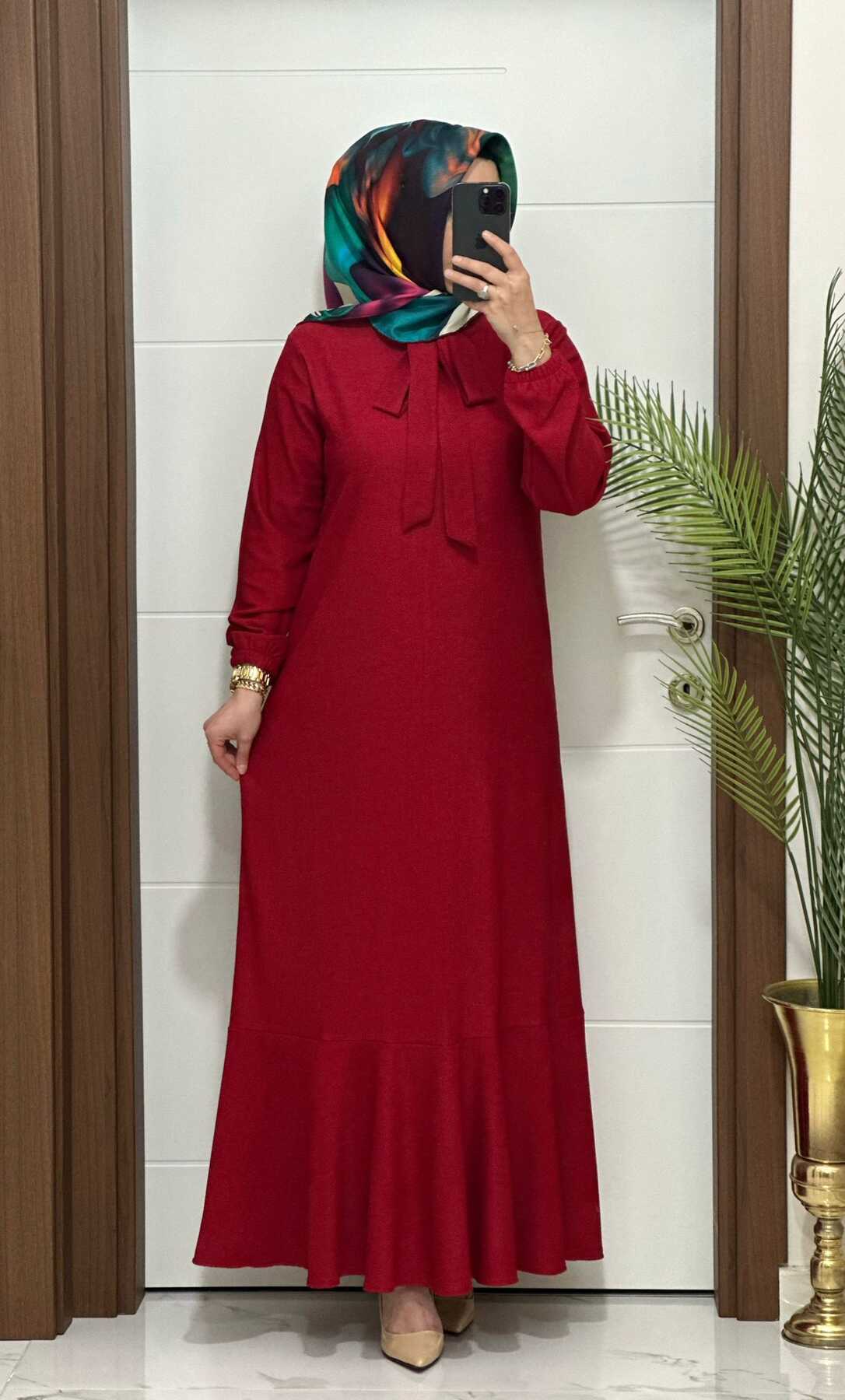 1095 K90 KIRMIZI KRAVAT DETAY KARİN KUMAŞ buyuk beden elbide yeni sezon