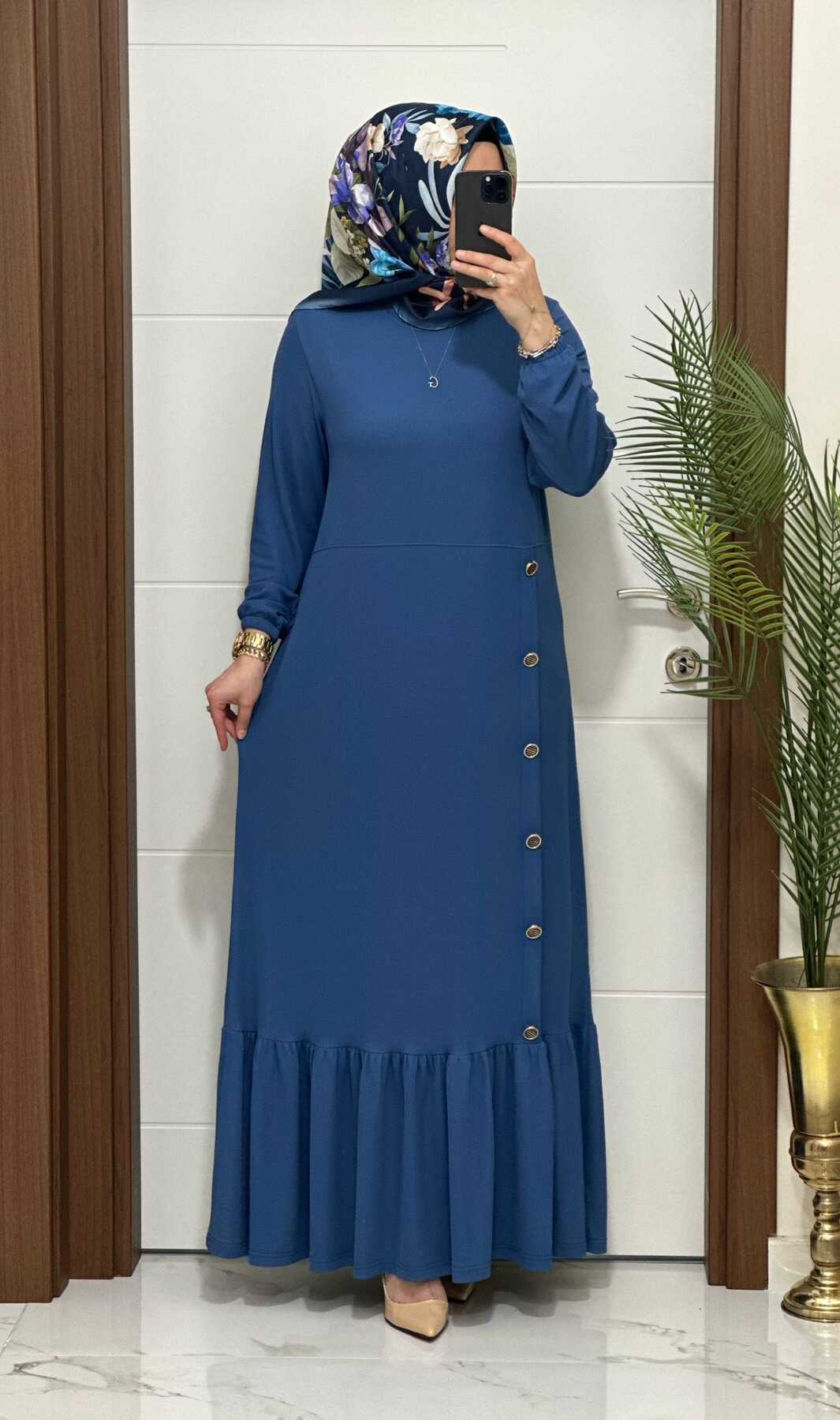 1177 K 90 INDIGO eteği düğmeli fitilli burgu kumaş beden elbise yeni sezon