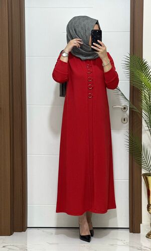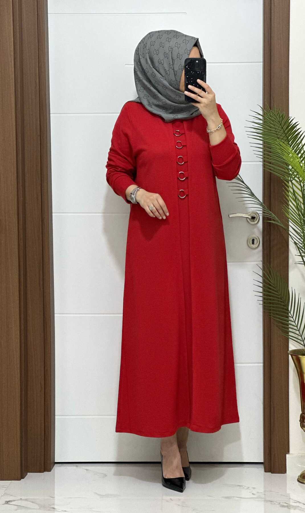 1660 K 80 KIRMIZI fitilli atlas kumaş halka detay buyuk beden elbise yeni sezon