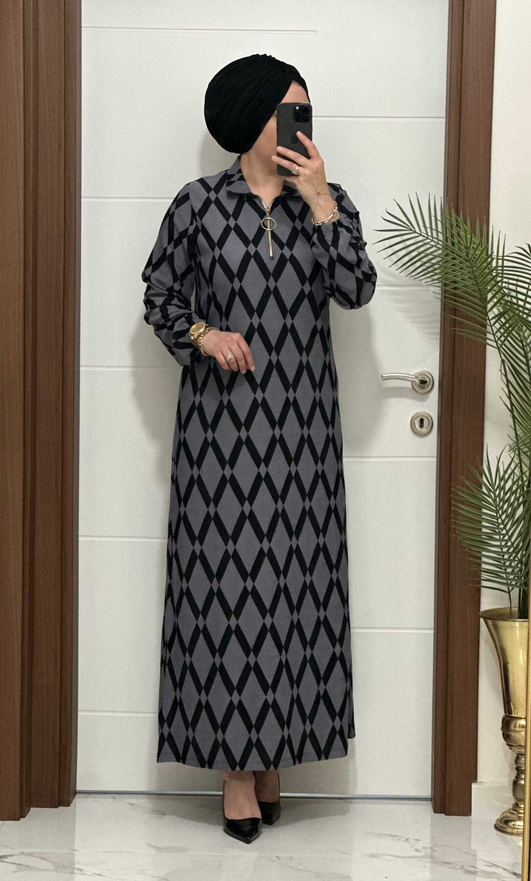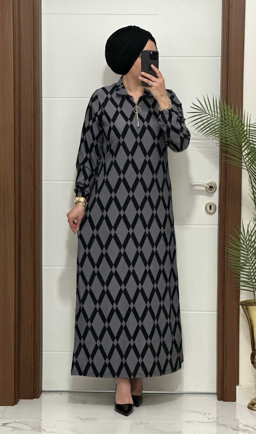 1080 k 90 gri renk karin kumas FERMUAR detaylı elbıse yeni sezon büyük beden