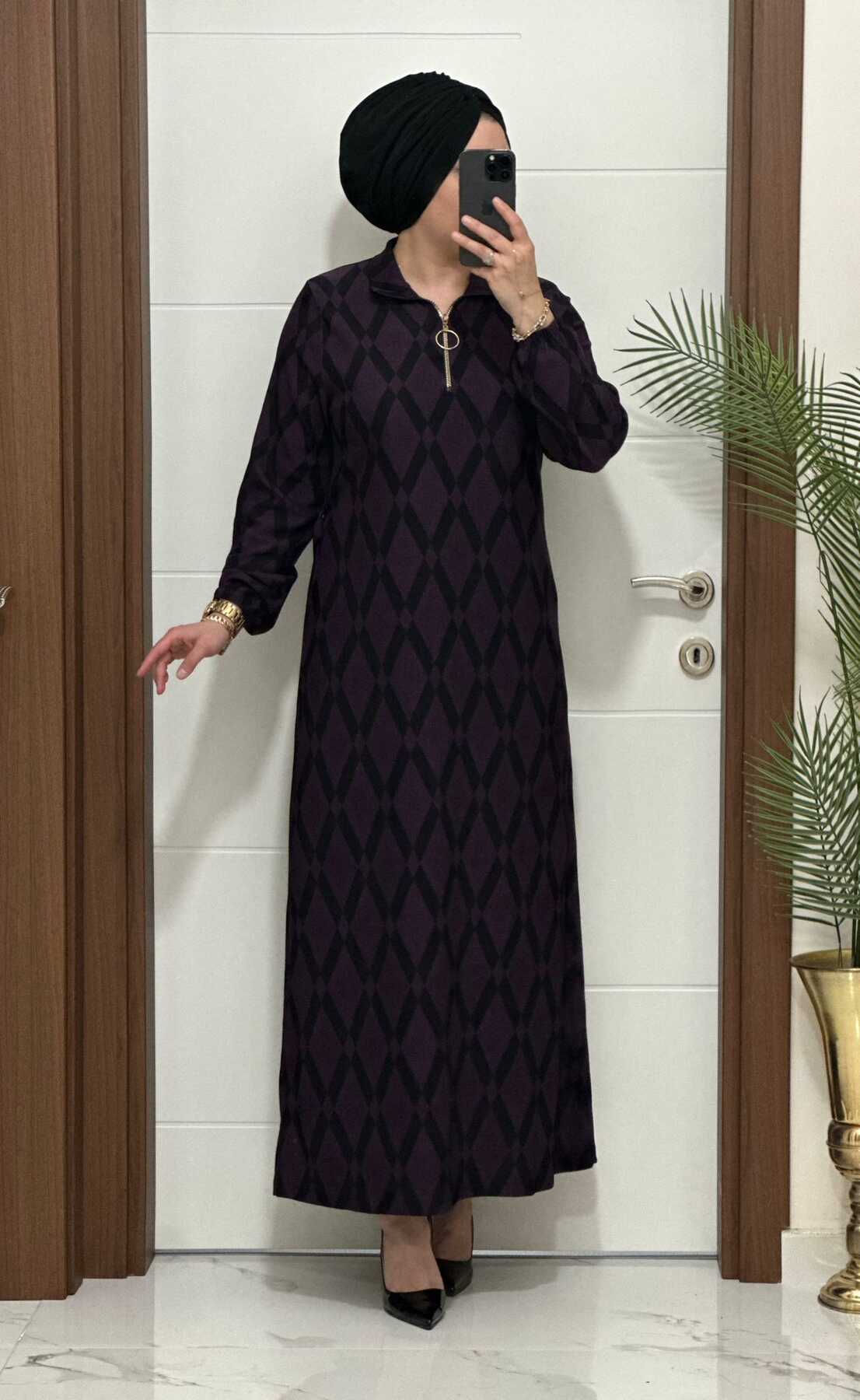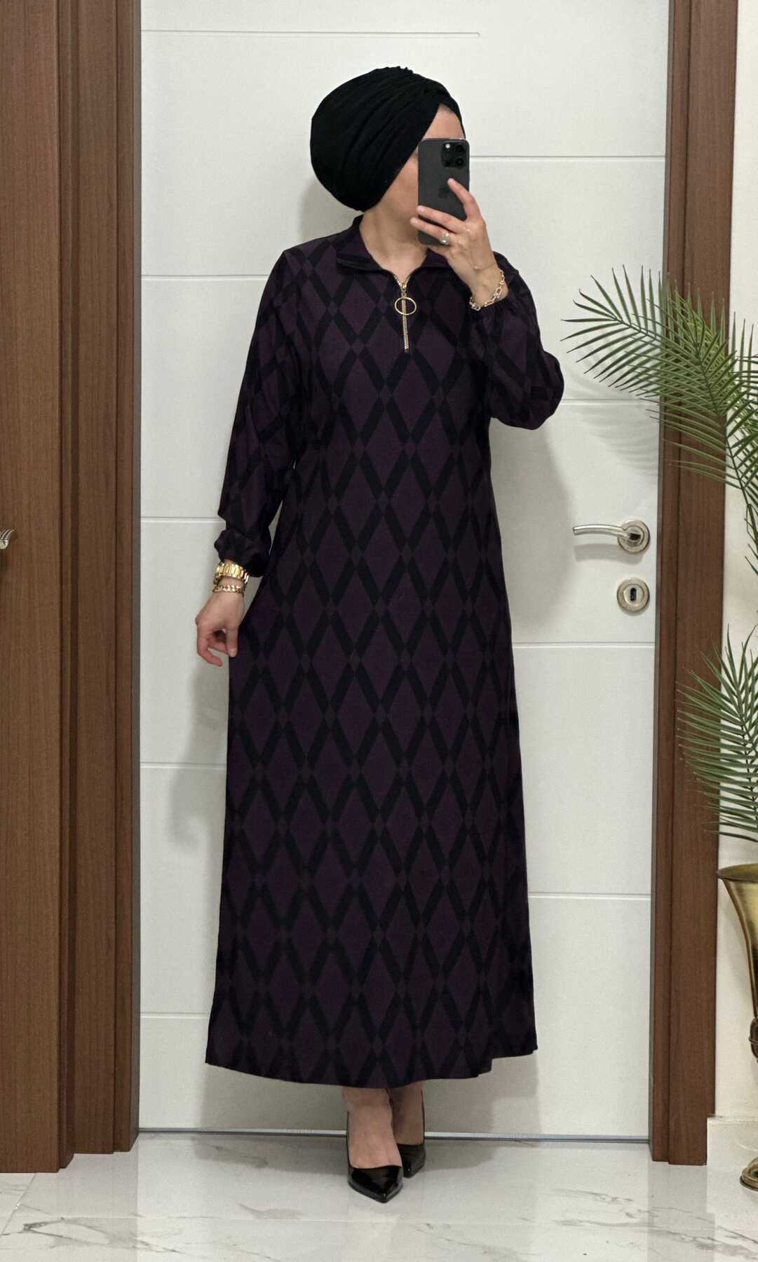 1080 k 90 mürdüm renk karin kumas FERMUAR detaylı elbıse yeni sezon büyük beden