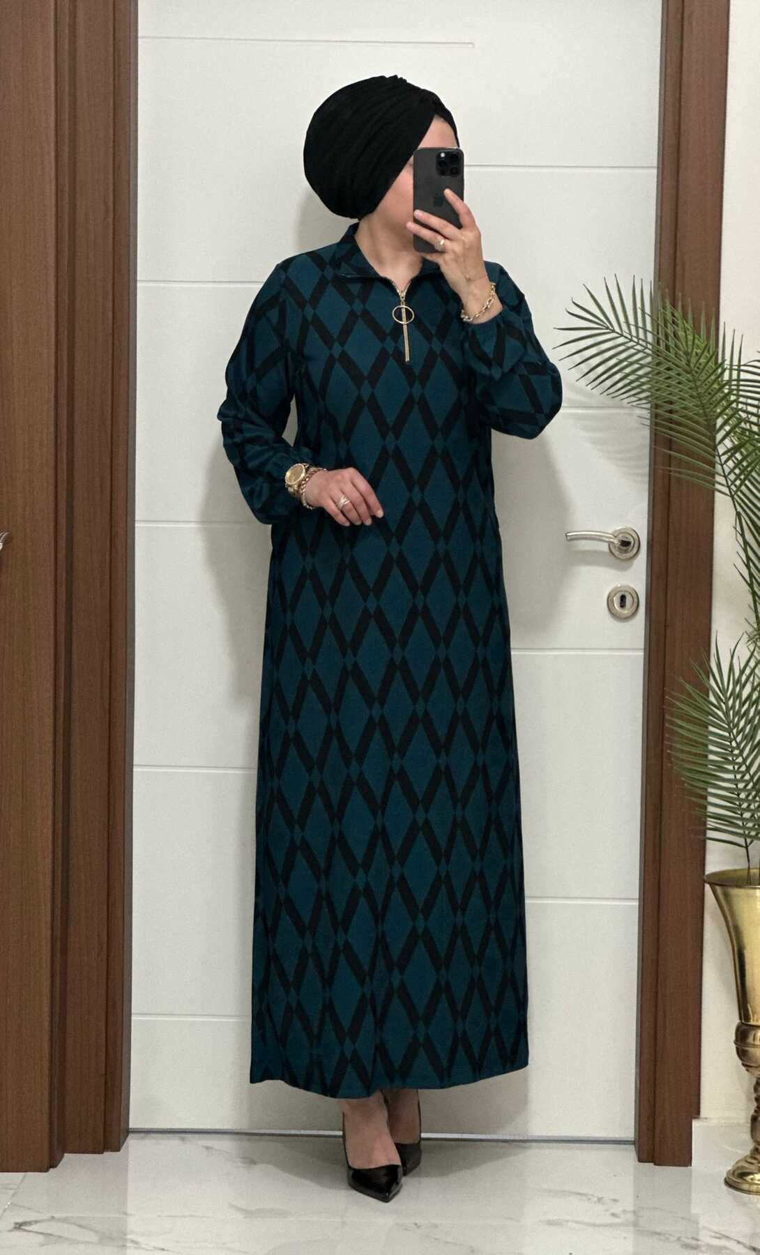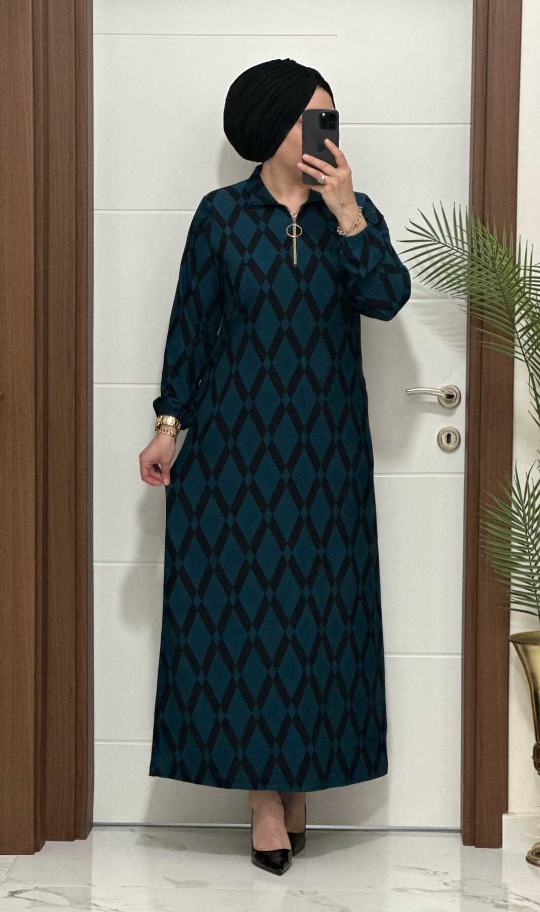 1080 k 90 petrol renk karın kumas FERMUAR detaylı elbıse yeni sezon büyük beden