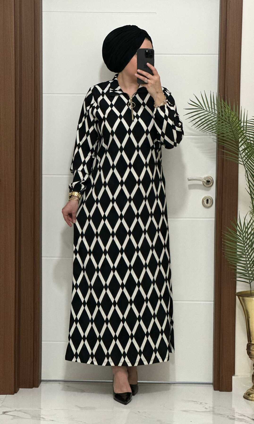 1080 k 90 siyah renk karin kumas FERMUAR detaylı elbıse yeni sezon büyük beden