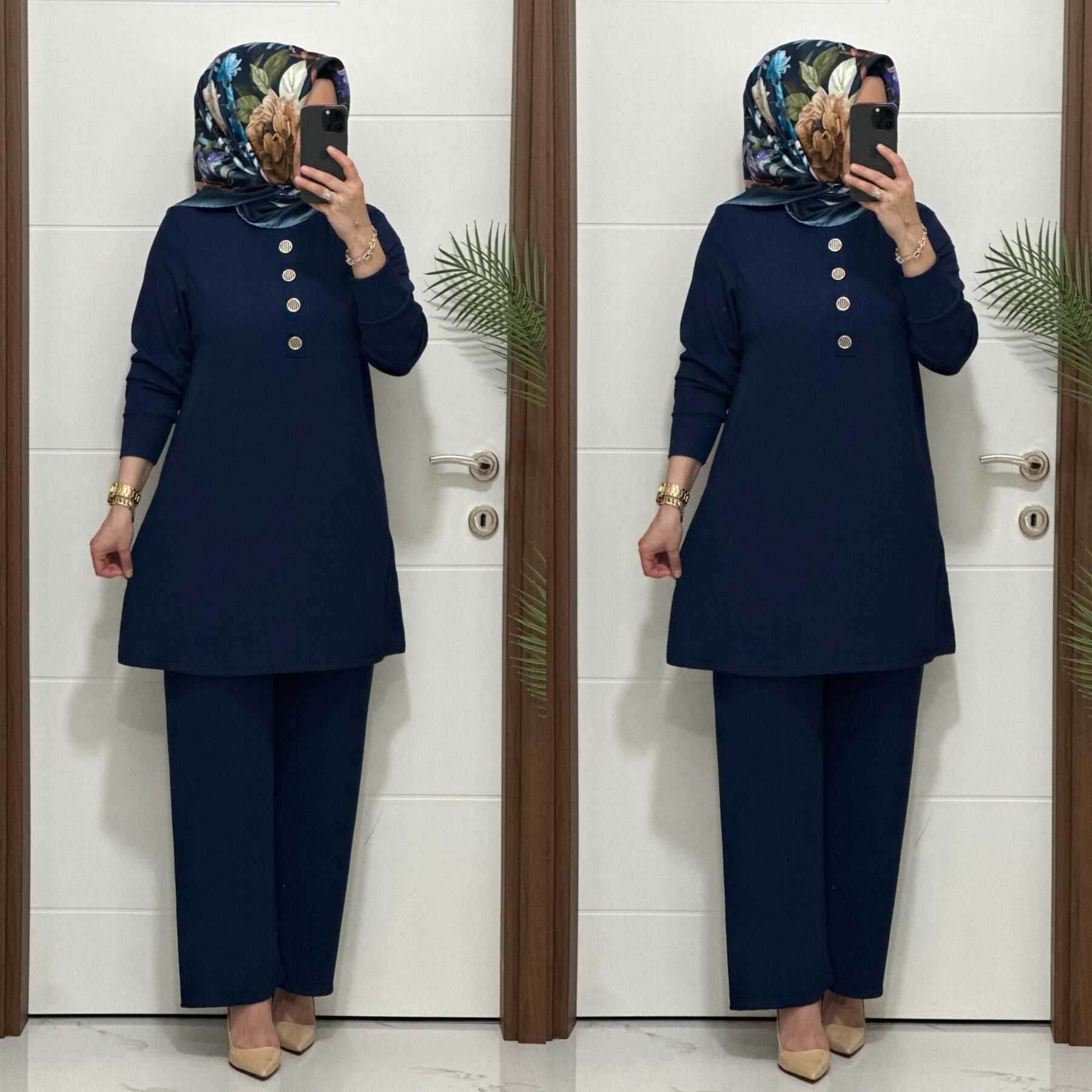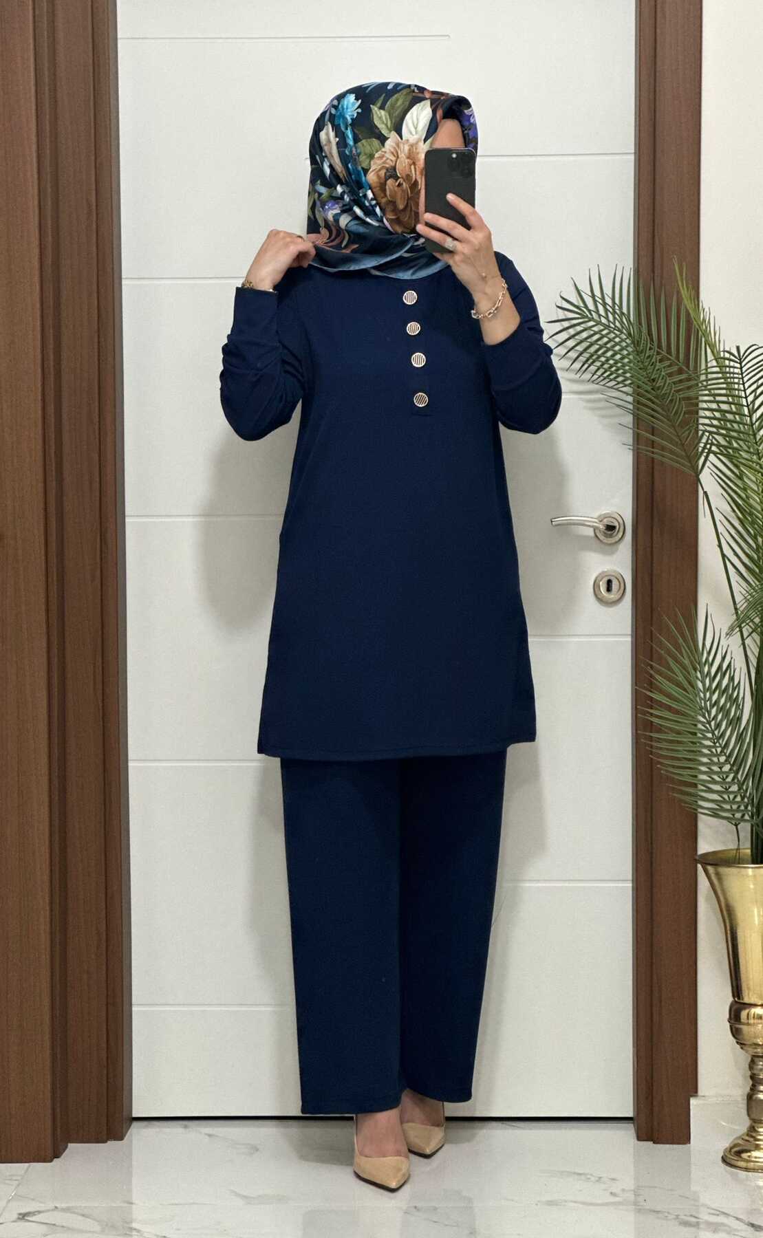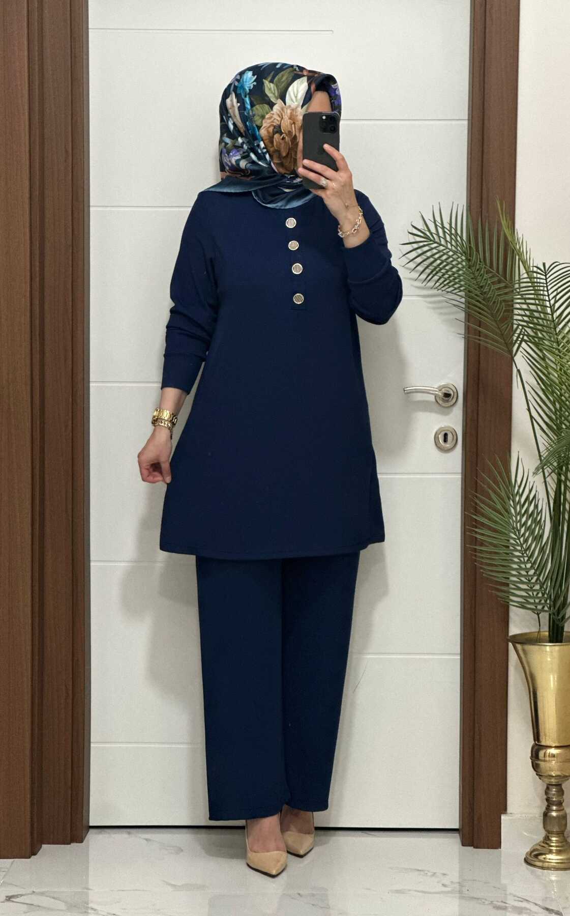 7044 K 90 lacivert DÜĞMELİ fitilli burgu kumaş tunik pantolon takım buyuk beden yeni sezon