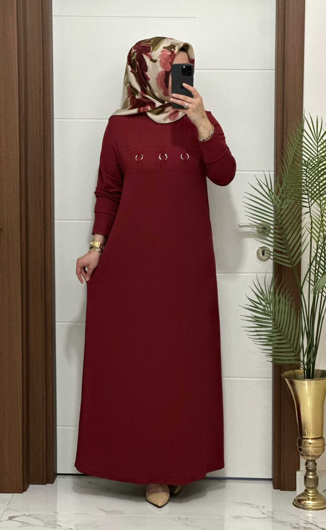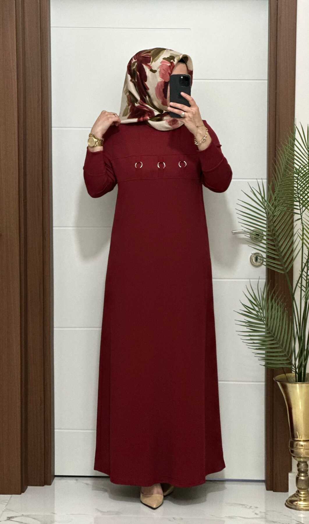 1444 K 80 bordo ILAYDA halkalı model fitilli burgu kumaş buyuk beden elbise yeni sezon