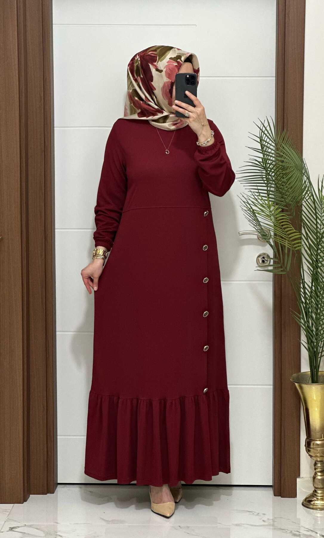 1177 K 90 BORDO eteği düğmeli fitilli burgu kumaş beden elbise yeni sezon